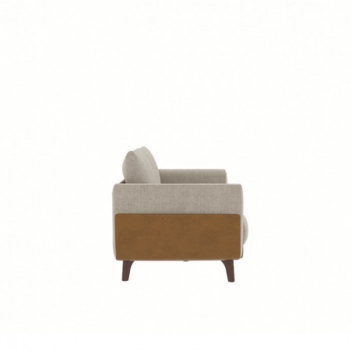 پارچه کرم به همراه چرم نسکافهای و پایه گردویی، انتخابی گرم و کلاسیک.
